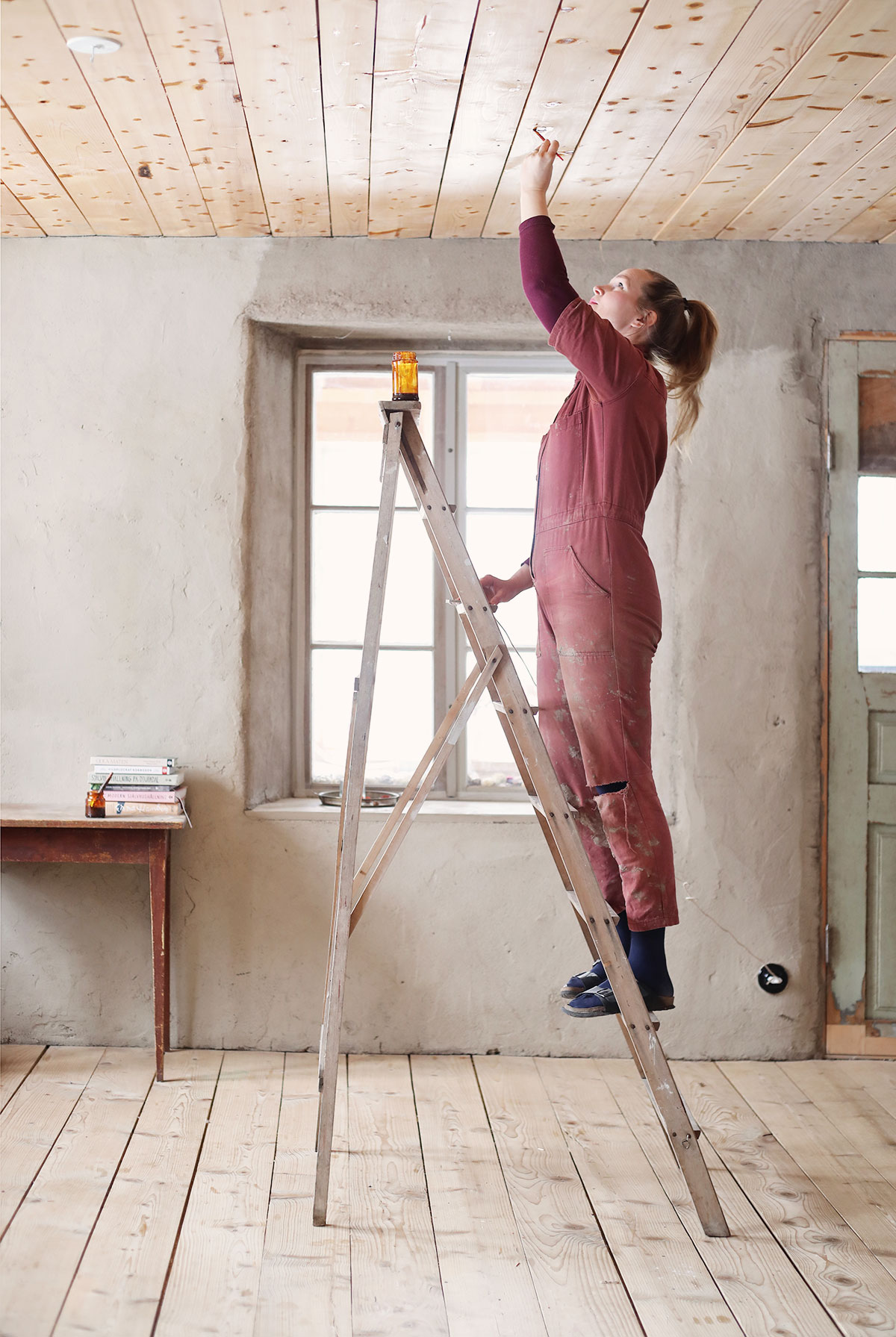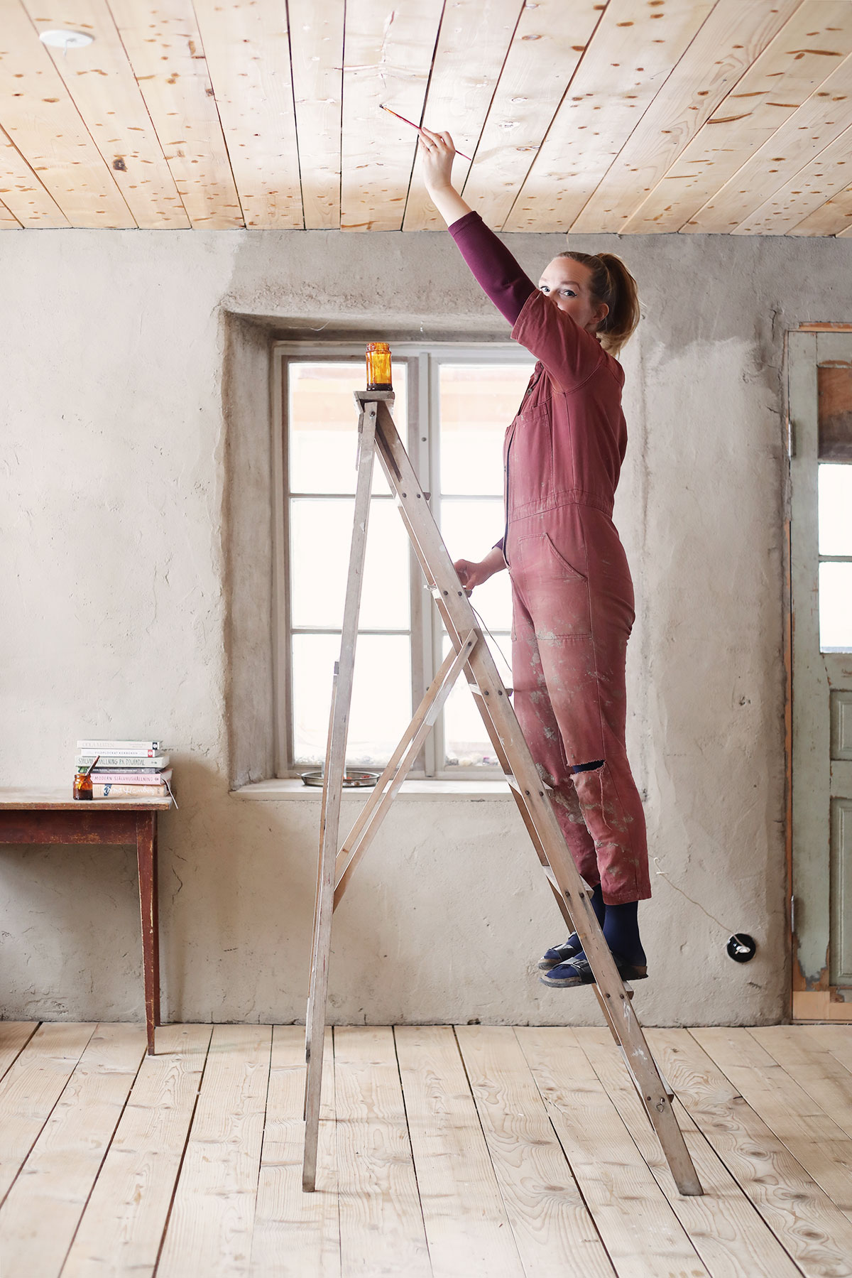 Men det tar tid. Lerväggarna suger ohemult mycket färg, så det tar sin lilla tid att få ett rum klart.
