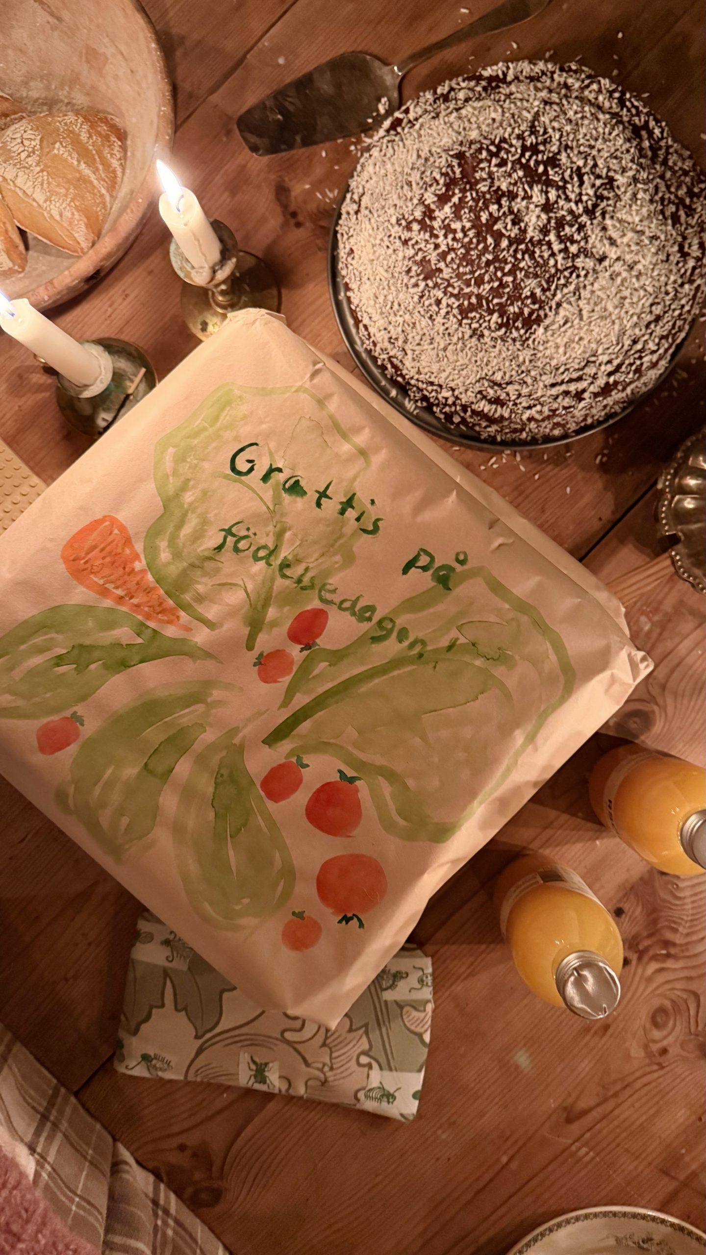 Fick så fina presenter. Barnen hade ritat teckningar och pysslat, och till och med min mamma hade målat på ett paket.